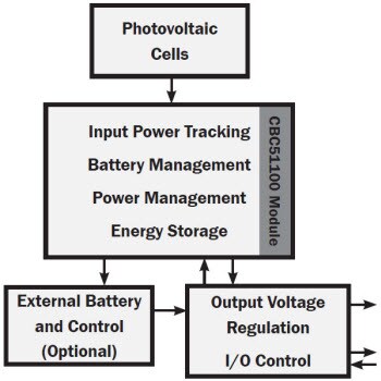 • Energy harvesting circuitry that matches the impedance of photovoltaic cells to ensure maximum power transfer to system load and on-board energy storage devices